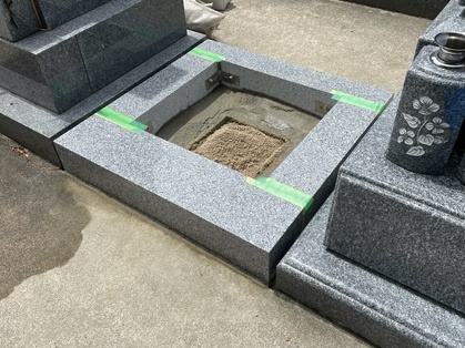 倒木により、墓石(棹石)が倒れてしまったと施主様から依頼を頂いたので修繕させて頂きました。