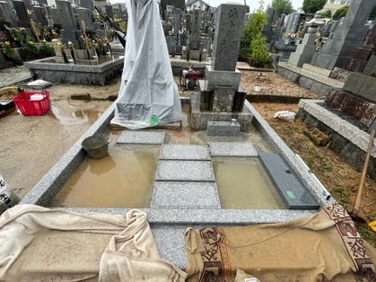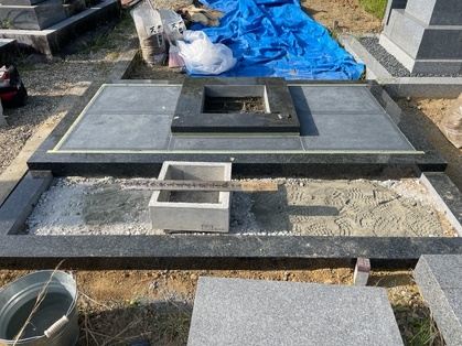 墓所内の墓石の基礎もしっかりと固めさせて頂きました。