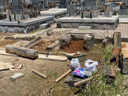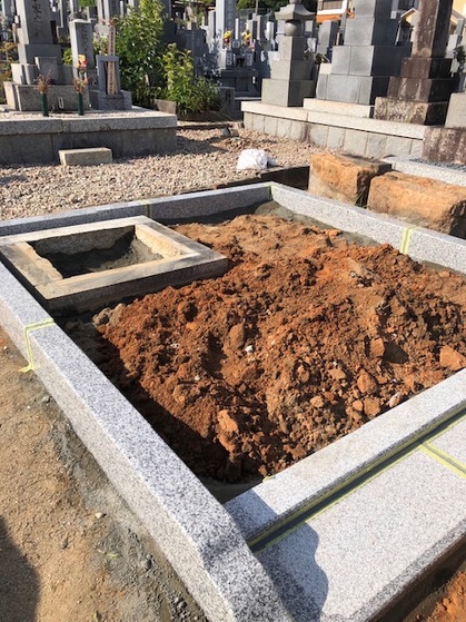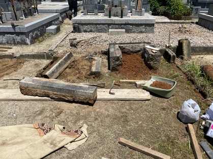 ③墓所の前に先祖の土葬墓があるので、お骨堀りをして『先祖累代之墓』に入れる