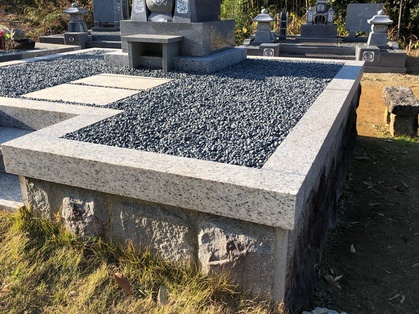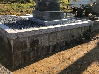 墓石が9寸墓石2基、8寸墓石1基、小墓石が5基、墓誌1枚が入る外柵の造成工事です。