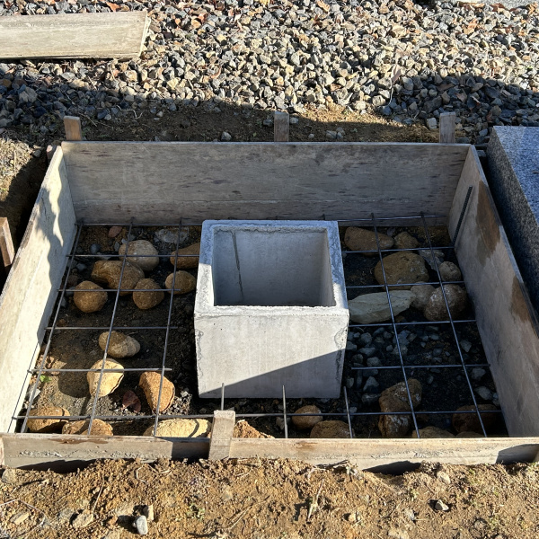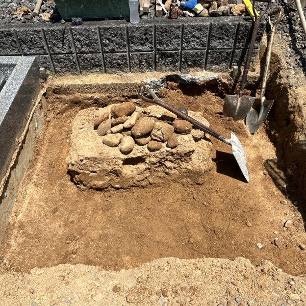ここの墓所は、あまり水はけがよくない墓所ですので、お骨が入るスペースはあまり深くは掘らないようにしてあります。