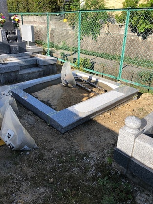今回墓石を綺麗に据え直しを行い、外柵を新しく作り直し、土葬の墓を掘り返して、お骨を取り出す仕事となります。