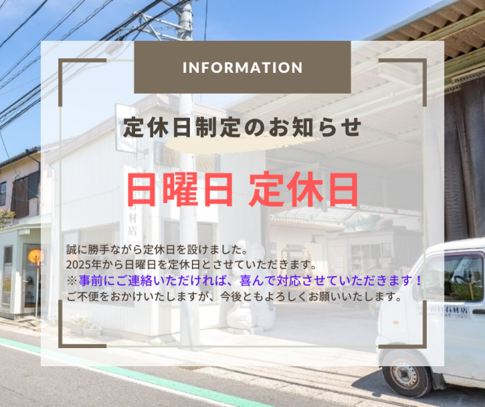 今年から弊社は日曜日を定休日と設定させて頂きます。