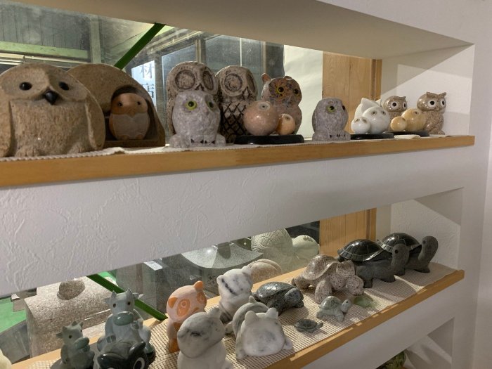 ふくろうや猫、牛、亀 小さい子たちたくさんお店にいます。福が来る、幸福を呼ぶといわれるフクロウはどのお宅にも喜ばれますね。とてもかわいいですよ。贈り物でも喜ばれます。