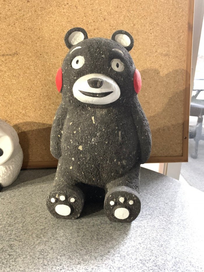 石の置物2 彫刻品 くま 2019年10月20日(日) 山口石材店 山口石材店スタッフ 石の彫刻品・記念モニュメント こんばんは(^^♪嫁Kです。 今日は我が家のくまさんをご紹介します。 くまさんにも色々ありますが1枚目のくまさんは身長46㎝。姪っ子に似ていていたので、『ここぐま』とか『こっちゃんぐま』と私は呼んでいます。愛らしい童顔な子で私のお気に入りのくまちゃんです。 2枚目の皆さんもご存知の『くまモン』。こちらは熊本地震の時に復興を願って出されました。 身長26㎝と32㎝。よろしかったら皆さん見に来てください(^^)/ お待ちしております。次回はまた大きい子ご紹介致します(^^♪お楽しみに!!