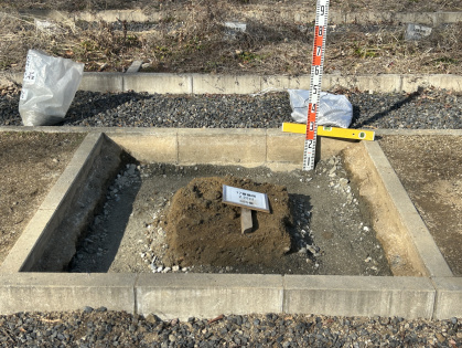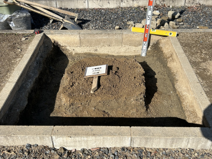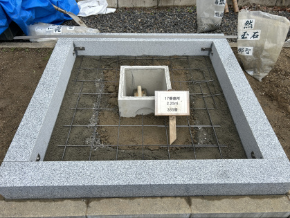 ここの墓所は、あまり水はけがよくない墓所ですので、お骨が入るスペースはあまり深くは掘らないようにしてあります。