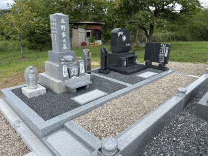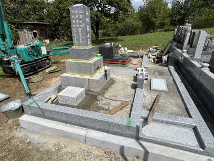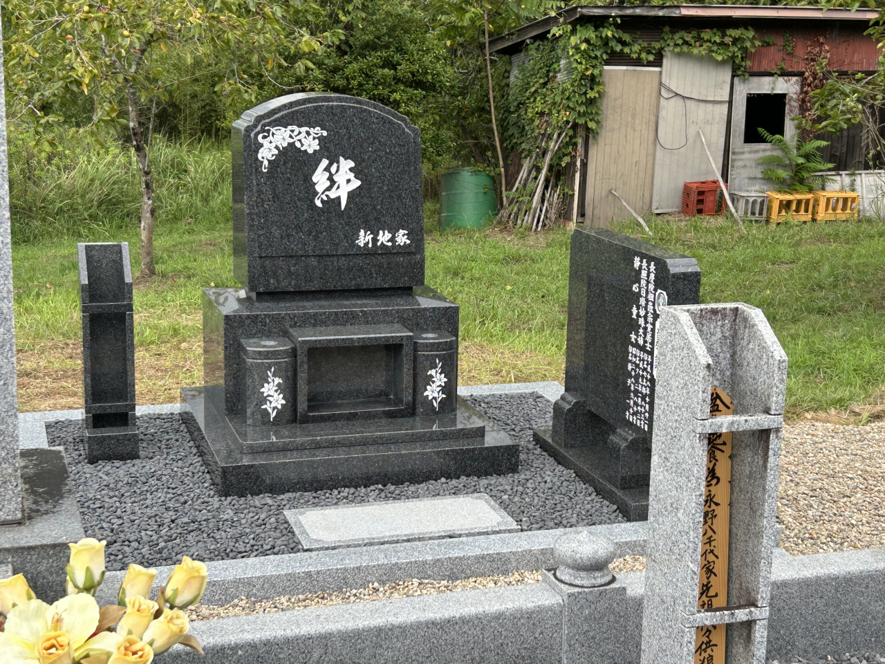 奥様のご実家側の墓所を整備し、折半して施主様のお墓(洋墓)を新しくとなりに建立させて頂きました。