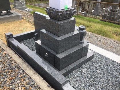 選ばれた石種は中国産のグレー色の御影石(中目)で、先祖が大勢いらっしゃるので蓮華台を付けたいとのご要望でしたので、付けさせて頂きました。