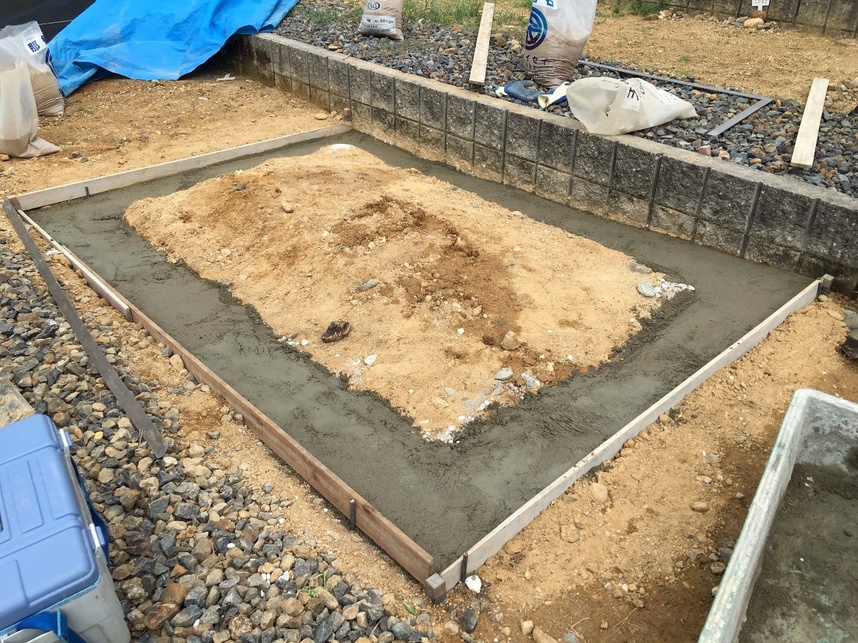 鉄筋を組み込んだ後、その上にセメントを流し込んで2週間ぐらい放置し固まるのを待ちました。