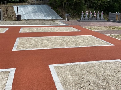玉砂利だと草が生えてくる可能性がゼロでは無いので、墓石と外柵の間に板石をはめ込んでほしい。