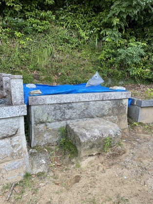 - お精抜きが6月1日に行われ墓石の解体、移動工事に入る