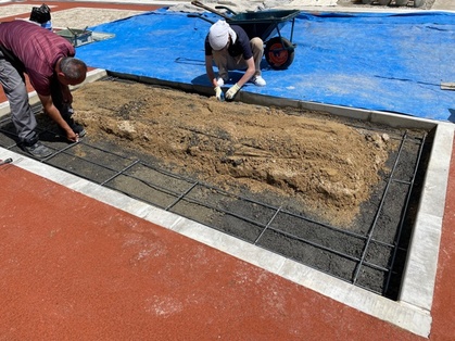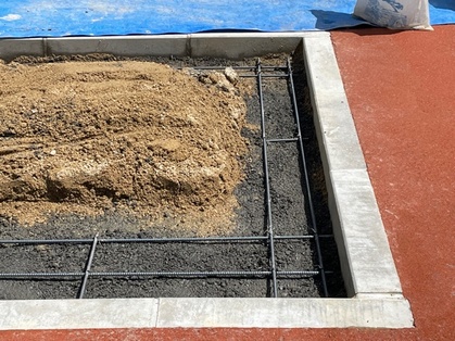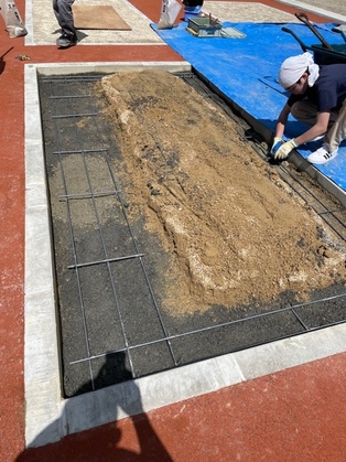 地面を掘ると水が出てきてしまい、ランマでの転圧ができない。