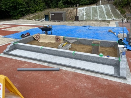 外柵の基礎も生コンを入れたので、墓石の下も全体に生コンを投入ヽ(*´∀`)ノ