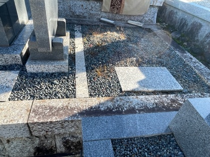 見積もりの時点で、墓石のクリーニングのご提案をさせて頂いたところ一緒にやってもらいたいとのことでしたので、サービスで物置台を新しく作り直しをさせて頂きました。今までの墓石と物置台のサイズが合っていなかったので見た目も良くなりました。