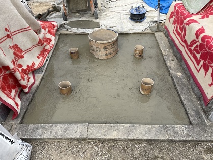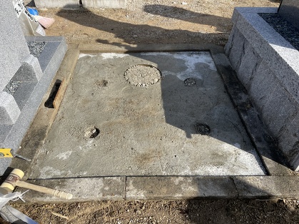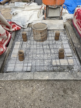 右側:生コンを打った後の状態(水抜き用の穴が設けてあります)