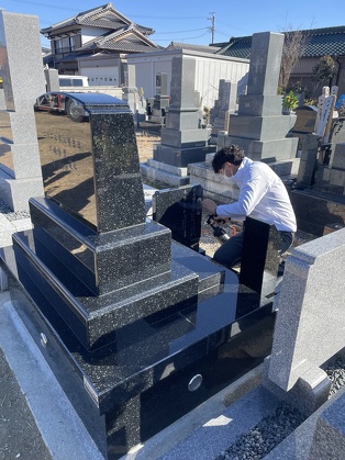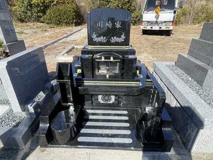 川崎様のご主人さまが、石材店側に任せっきりではなく、ご自分の考えやイメージを元に弊社の提案させて頂いた図案などを一緒になって考えて頂きましたので、川崎様のご要望に近い形の墓石を建立できたのだと受け止めております。