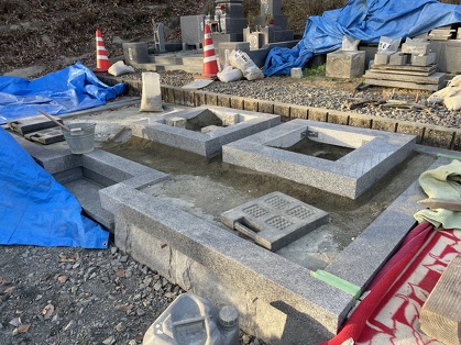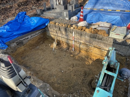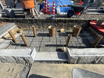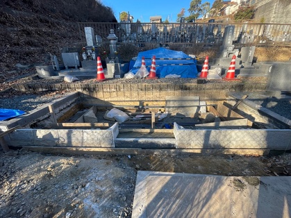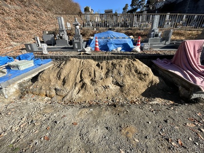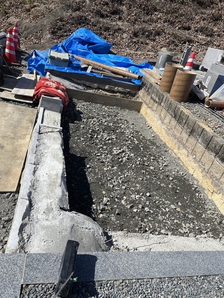 暗渠埋設工程が終わった後、墓所の基礎工事に移りました。