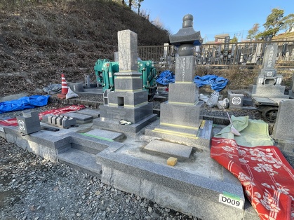 外柵工事が完了した後、墓石のクリーニングを行い再度据え直しを行いました。