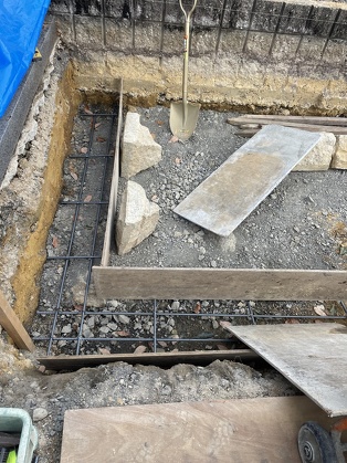砂利を入れた後、転圧後生コンを投入(鉄筋も入れてあります)