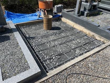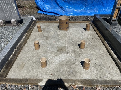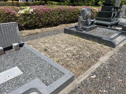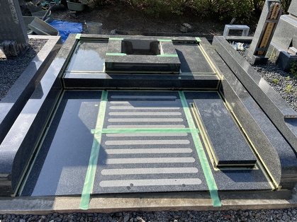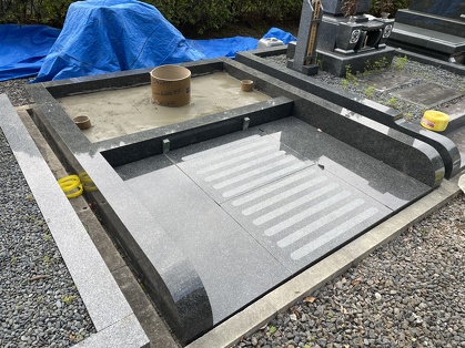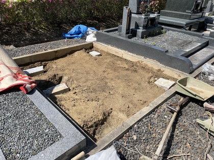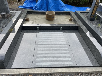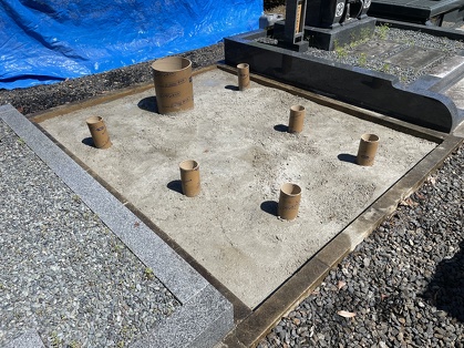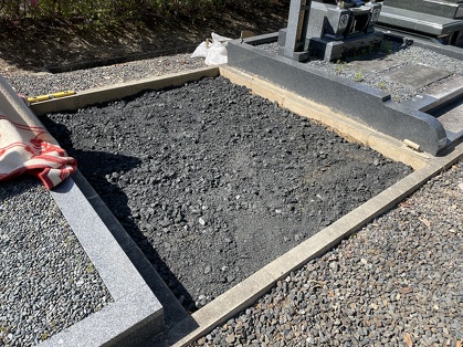 外柵、墓石の芝台(横の板石)の据え付けを終えた状態。