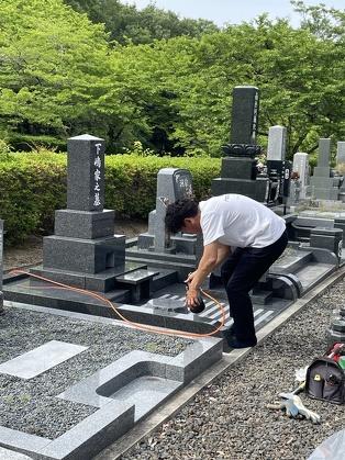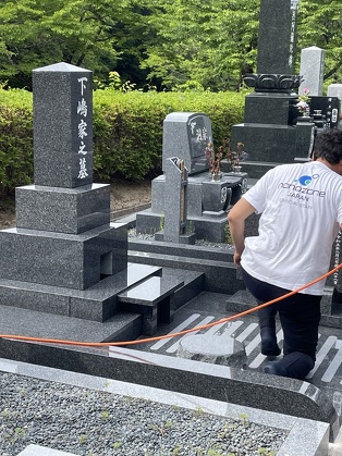 墓石のコーキングが固まった後、天気の良い日を選んでナノゾーンコート(光触媒コーティング)を行いました(弊社の契約している企業に委託)