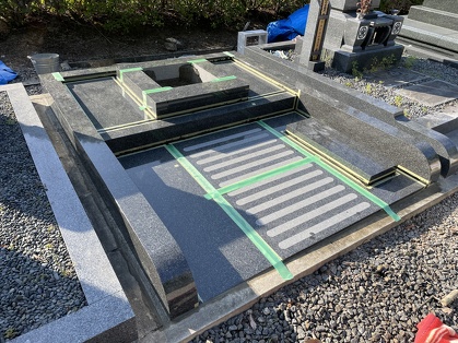 また、隣近くの方とは少し色やデザインを変えて欲しいとのことでしたので、黒がベースのグレー色の御影石を選ばせて頂きました。
