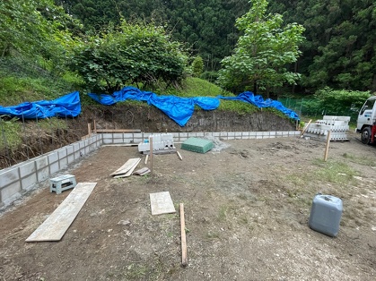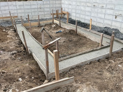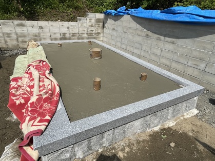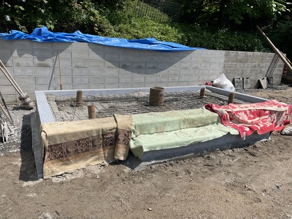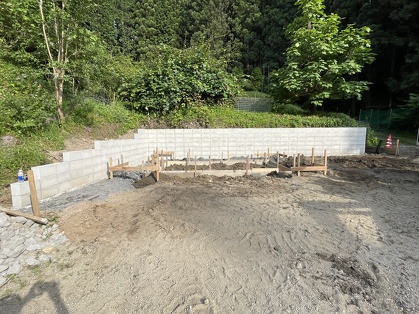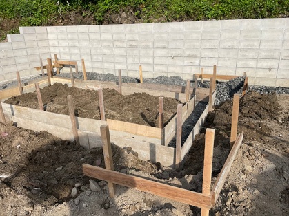 また旭地域は冬場土壌が凍る為、ブロックの基礎に約30センチを打ち、鉄筋を組ませて頂きましtあ。
