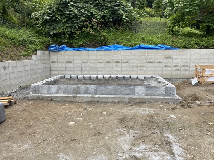 予定されていた場所から2m後方まで土を除去行い、ブロックを最高で7段積み上げました。