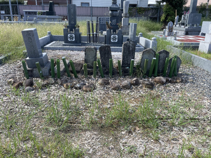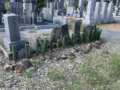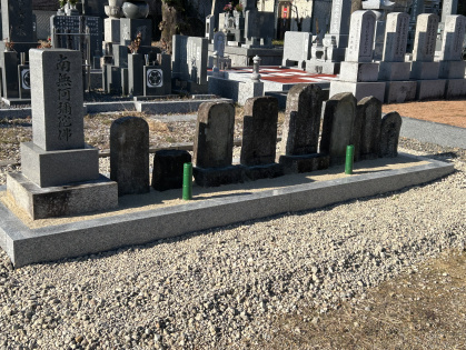 数十年前に檀家さん数軒で建てられた墓石ですが、現在管理される方もいらっしゃらなくて無縁墓となってしまっているので、きちんと囲いを設けて墓石を建て直してほしい。