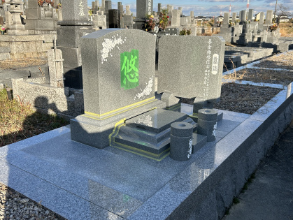 一宮市内に建立されていた奥様のご実家の墓石。こちらを墓じまいさせて頂きました。お骨のみ新しい墓所に移動になりました。