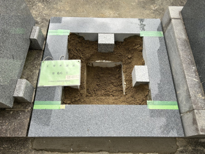 水はけが悪いので、お骨を入れるスペースを嵩上げしておかないとお骨が水に浸かってしまう可能性があると判断し、升の中は川砂で嵩上げさせてもらっています。