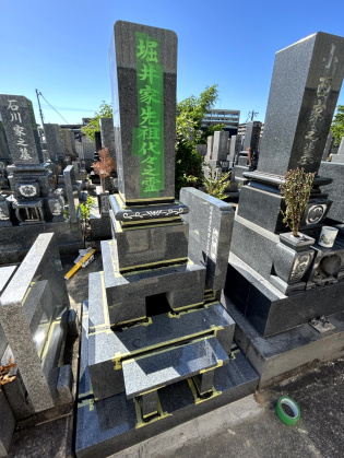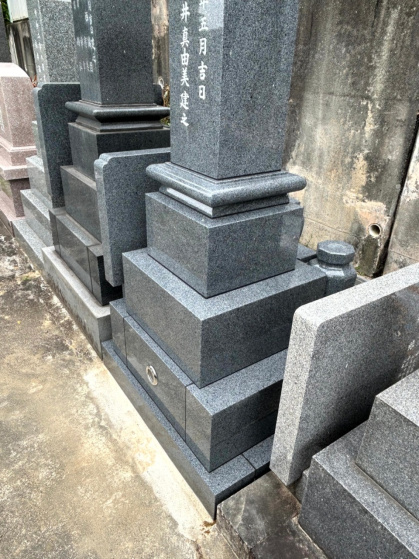 名古屋市緑区八事霊園管轄の有松町愛宕霊園での建立工事をさせていただきました。この墓所は水はけが良くありません。