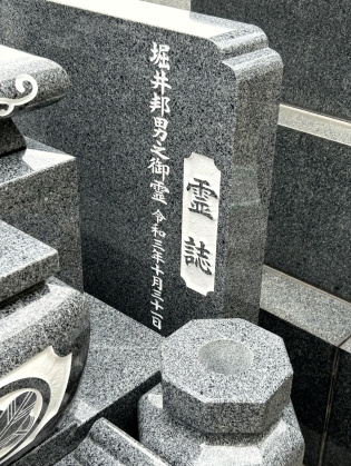 墓所自体がそんなに広くないので、規定内に納める為に四ツ石に墓誌のゲタを乗せて墓誌を立てる設計にさせていただいてあります。