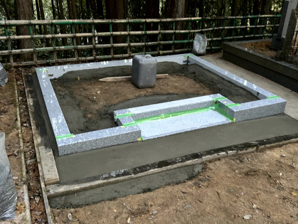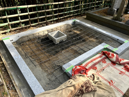 墓石の下も鉄筋を組み、生コンを使用し、墓石も耐震施工用のコーキングにて固定してあります。