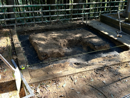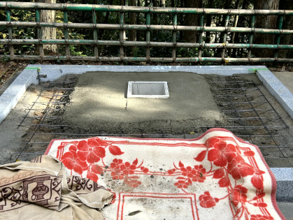 足助の山林に囲まれた中で、冬場少し寒い場所でもありますので基礎に鉄筋を組み、生コンを入れて施工。