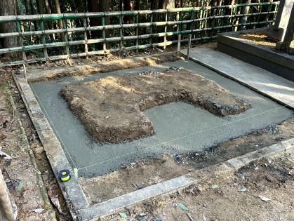 生コンが固まった後、外柵の据え付けが完了した状態です。