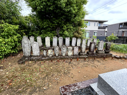 古い墓石が横2列に並んでおり、長年各石碑1つに対して2個花壺がついており、お墓参りも大変だったと仰られておられました。