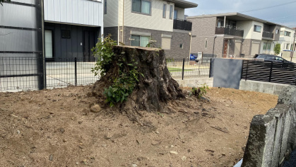 周囲の木も短く切らせて頂き、大きな樹木は造園屋さんに依頼し根から約1mぐらいでカット。