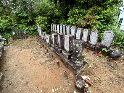 数か所に分かれている先祖の墓石がある墓所の一つを整理してもらいたい。古い墓石が25基近くあるので、子どもさん達が引き継ぎやすいように、花とロウソク・線香立てを設けてもらいたい。