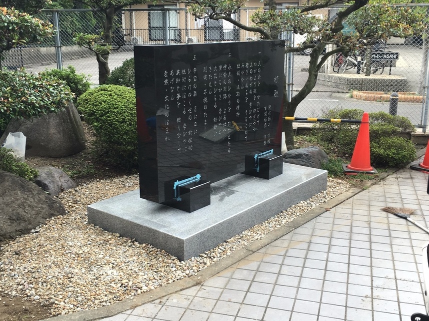 校歌碑は1t近い重さがあるので、基礎をしっかりと行い絶対に傾いたり、倒れたりしない施工方法を行いました。