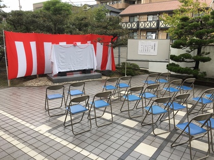 学校正門の横にある庭にちょうど良いスペースがありましたので、そちらに設置をさせて頂きました。