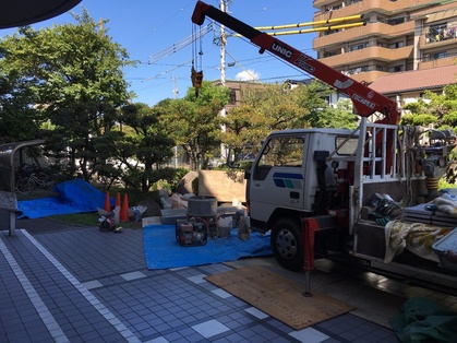 校内は2tトラックを搬入し、養生をしながらの作業でした。