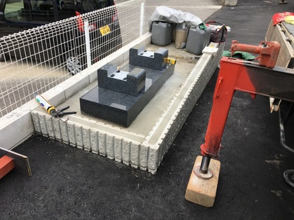 石種はグレー色の御影石を選ばせていただき、汚れも目立たなく、お客様や社員の皆さんんいいつも見て頂けるように、飽きずにシンプルなデザインで作らせて頂きました。