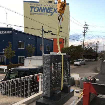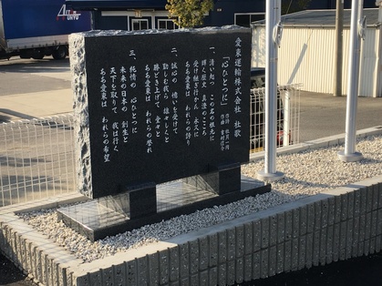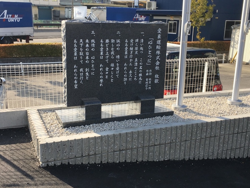 旧本社に数年前に社歌碑を建立させて頂きました。そして、この度新しく本社を移転されるということで、前回建てさせて頂いたサイズの約1.5倍の大きさで建立させて頂きました。